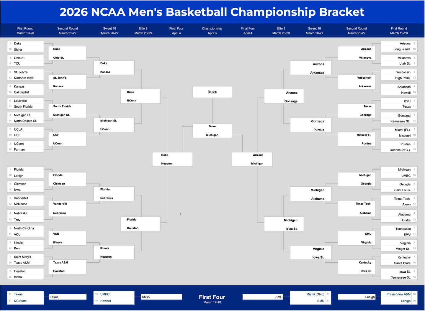Stay up to date on individual matchups even when your bracket gets busted!